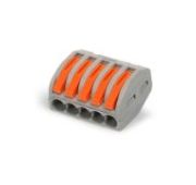 • Универсальные изолированные клеммы для соединения любых типов медных проводников: моножильных и многожильных тонкопроволочных • Зажим проводов в клемме осуществляется при помощи оранжевых рычагов • Наличие специального паза в корпусе клеммы для размещения рычага в закрытом положении надежно предотвращает случайное отсоединение проводника • Возможность измерения электрических параметров цепи без разбора и нарушения изоляции соединения • Безопасность и порядок в распределительной коробке • Максимальное напряжение: 450 В • В корпусе клемм СМК 222-2411 выполнены выступы и пазы, которые позволяют объединять клеммы в блоки