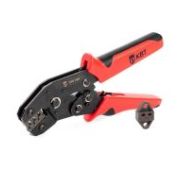 • Состав набора: • пресс-клещи CTB с механизмом быстрой смены матриц • матрицы МПК: 01/02/03/04/05 • прочная сумка на молнии • Совместимость: все матрицы МПК (КВТ) • Фиксация и высвобождение матриц нажатием на рычаги • Материал корпуса: 3-миллиметровая сталь • Усиленный трехшарнирный рычажный механизм • Удлиненные нескользящие рукоятки, позволяющие производить опрессовку двумя руками • Храповой механизм, обеспечивающий блокировку обратного хода до завершения полного цикла опрессовки • При работе требуют на 30% меньше усилий, чем аналогичный инструмент • Регулятор прижимного усилия матриц • Вес набора/инструмента: 1.05/0.62 кг • Длина инструмента: 260 мм • Габариты сумки: 280х125х50 мм