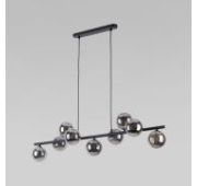 Светильник со стеклянными плафонами, в цвете черный жемчуг, оснащен системой регулировки высоты подвеса, позволяющей размещать изделие на разных уровнях, уменьшая или увеличивая угол рассеивания светового потока. Данный светильник легко устанавливается на потолке при помощи монтажной планки.