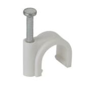 Предназначены для крепления круглых и плоских кабелей. Изготовлены из гибкого негорючего ударопрочного полипропилена, гвоздь - закаленная оцинкованная сталь.